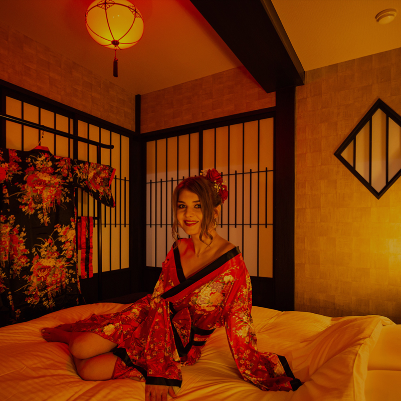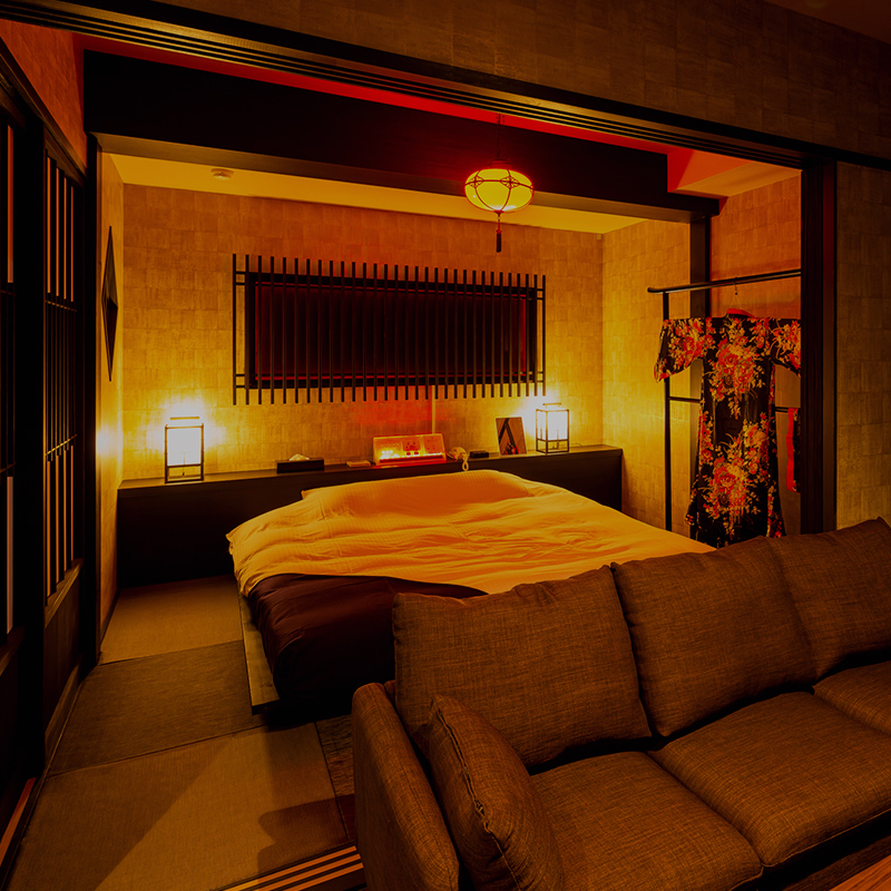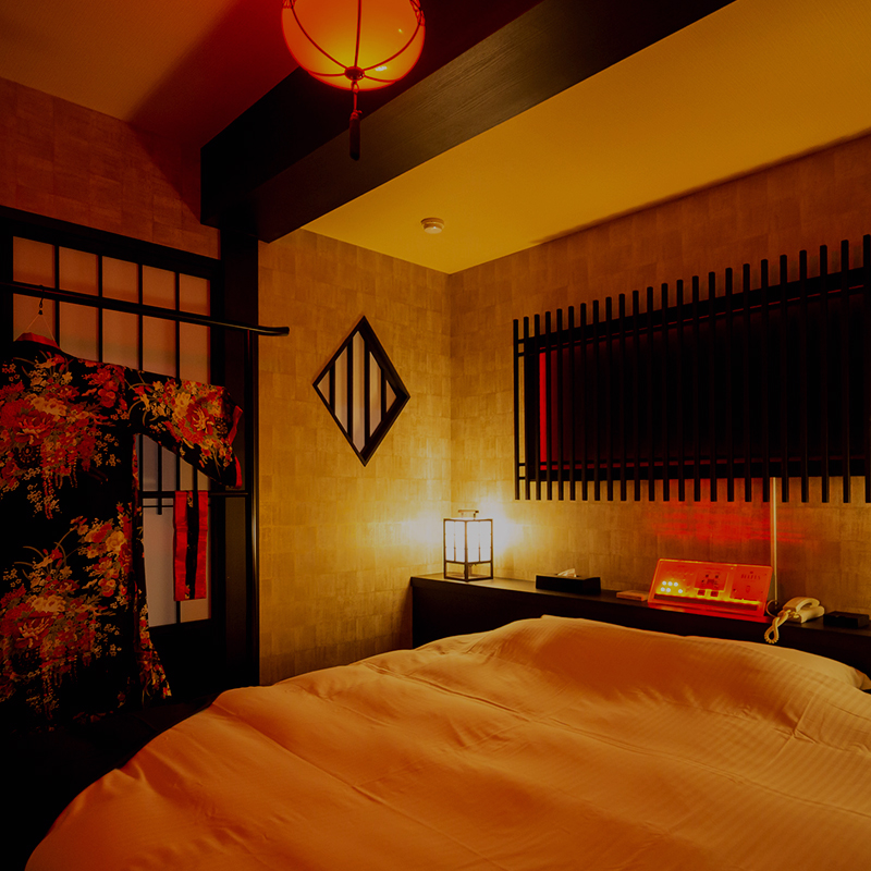 華やかな花魁の世界がテーマお部屋など、和・洋それぞれに高級感と居心地の良さを追求しました。 一歩足を踏み込むと、まるで別世界。大人の空間をお楽しみください。